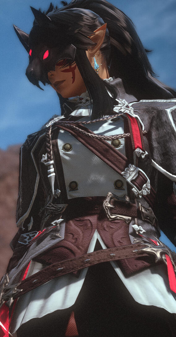 Cheek marked in red and bearing an iridescent shine to her hair, the identity of the woman before you is plain. Constantly fearing recognition, however deserved it may be, she takes steps, at times, to hide herself. What she is. As if she has the right.To most Eorzeans, she seems as any other person. Her peculiarities hardly stand out among the vibrant Eorzean diaspora. A closer look betrays more to keen eyes. Those that hail from Bozja and the Garlean Empire would be hard-pressed not to recognize the daughter of a Decemvir. Less likely, given the controversy surrounding her fall from grace. Yet... the woman before you does not invoke the image you'd expect of someone bearing the name Caarvelian. She holds no love for the Empire. So little, in fact, that she is known to assault others of her nationality in broad daylight.Unshakeable ; unwavering ; capable ; formidable ; callous. Mind the blood on her teeth, and ware her howl. Her bite is no less savage than her bark. She has only ever been a hound of war.